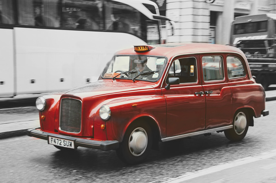 Mit Ebenenmasken in Photoshop lassen sich gezielt Bildbereiche bearbeiten, ohne das Original zu zerstören. Im ersten Bild ist alles farbig, während im zweiten Bild der Hintergrund in Schwarz-Weiß umgewandelt wurde – das rote Taxi bleibt farbig.